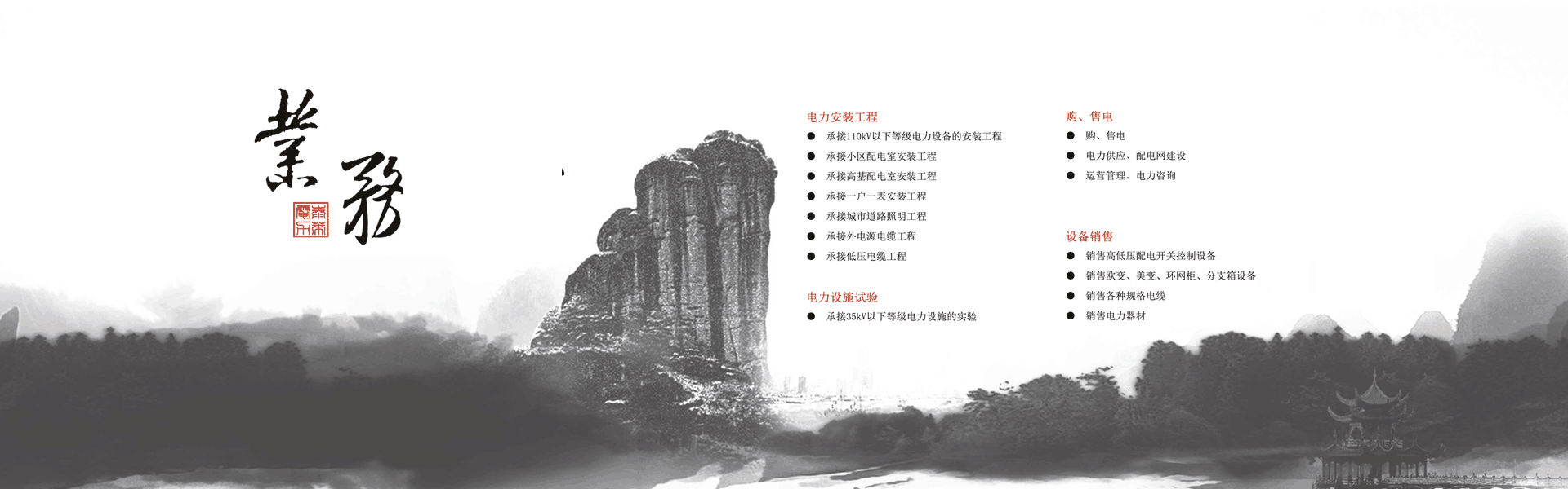 集高、低壓電力工程設(shè)計(jì)、安裝 、維護(hù)、試驗(yàn)為一體的專業(yè)電力施工企業(yè)。